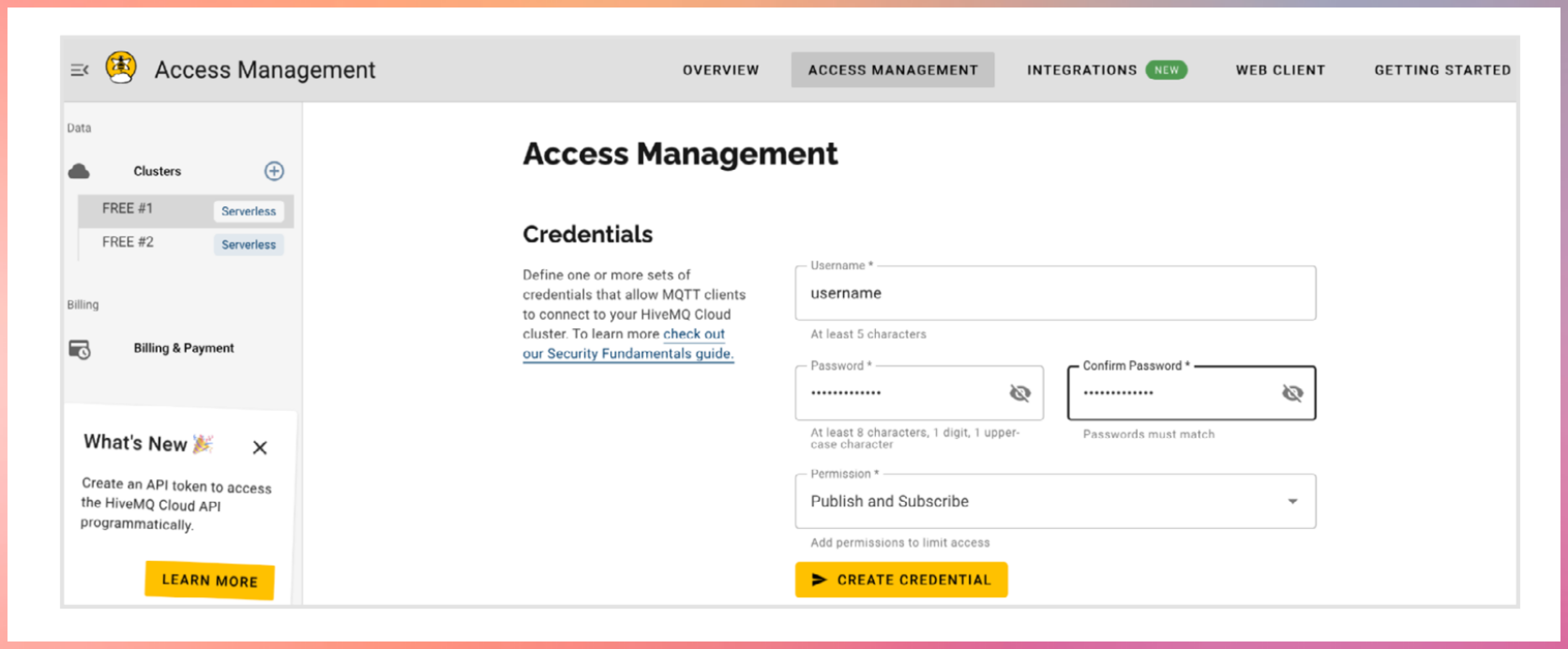 Register with hivemq cloud